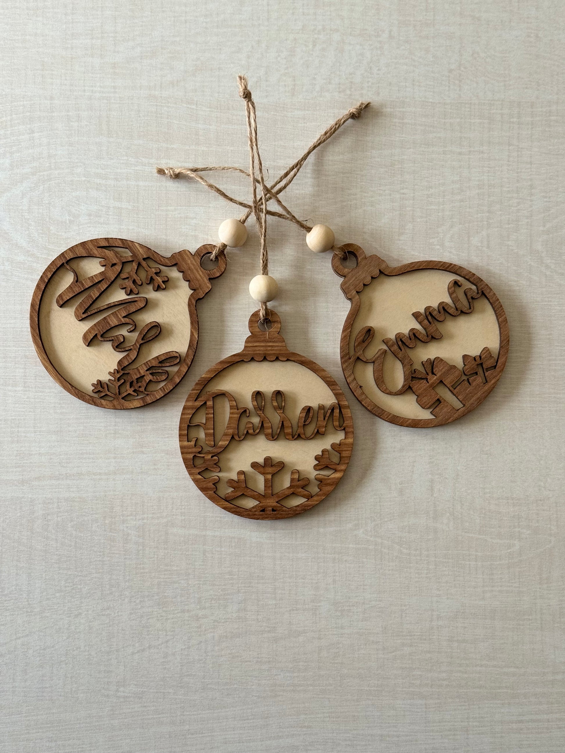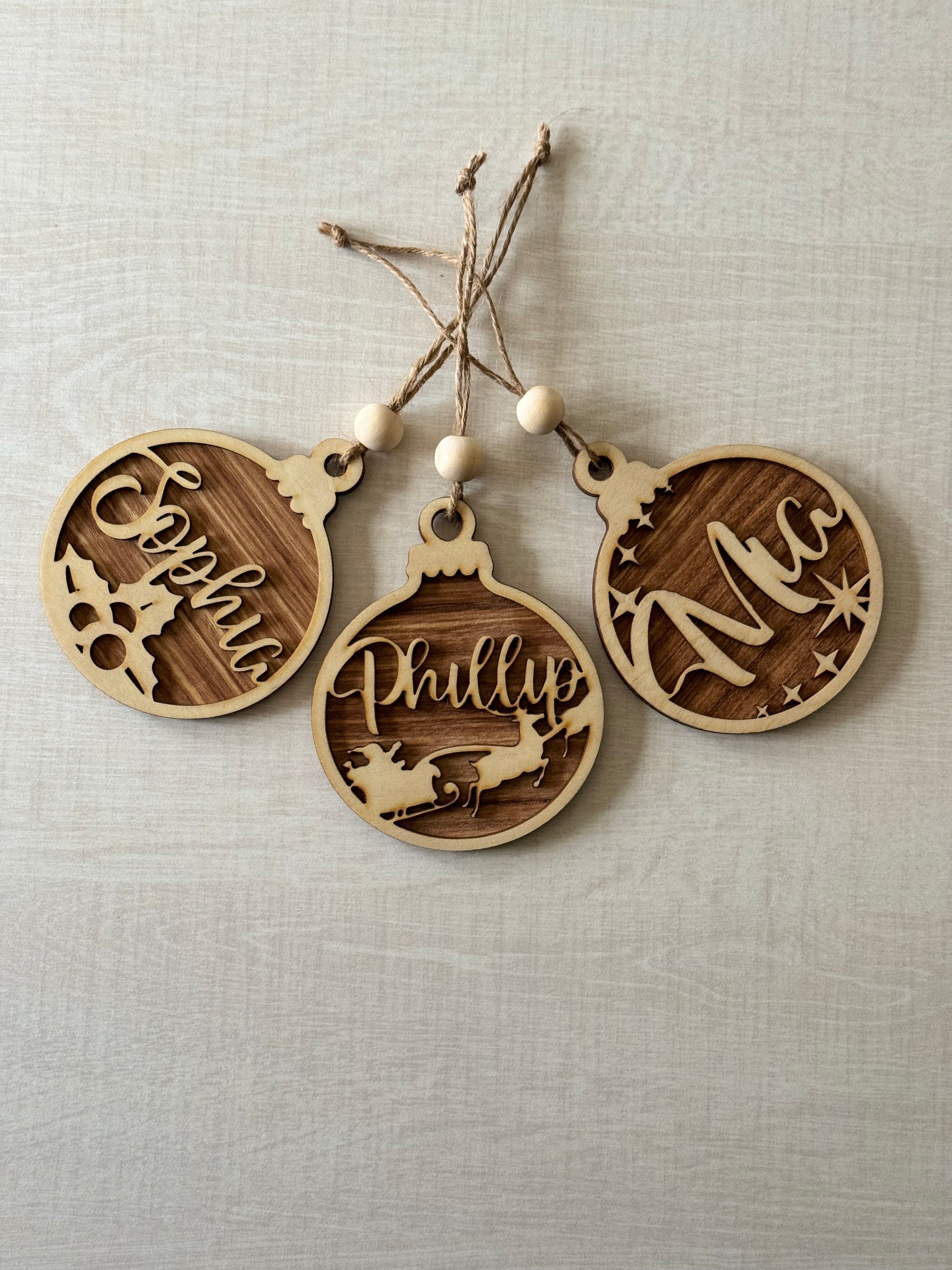 Bring a personal touch to your Christmas tree with our Custom Wooden Christmas Baubles. Each ornament is beautifully laser-cut and measures 10cm x 9cm with a sturdy 6mm thickness, making it a timeless keepsake for your holiday décor.